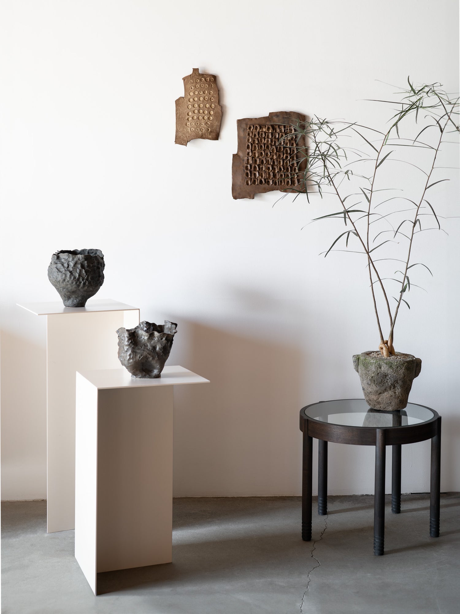 Nicole Neu is an artist working on the west coast. Her practice is built out of a curiosity for natural earthen material - flax, hemp, clay and earth pigments. Neu explores ideas of imperfection, impermanence, light and shadow, through humble materials and contrasting rigid and organic forms. While the material remains a large part of Neu’s informing inspiration there are references to landscape, topographical maps and architecture ever present. Each piece involves a delicate balance of intentionally molding material and surrendering to where the material wants to go.